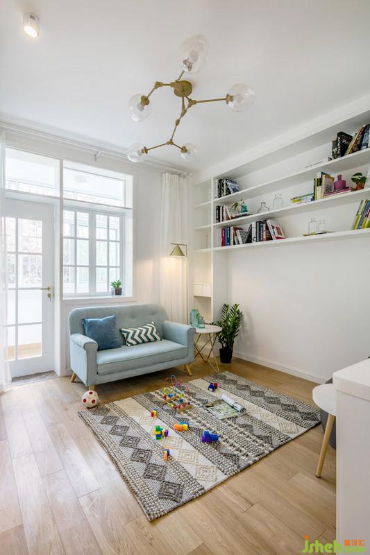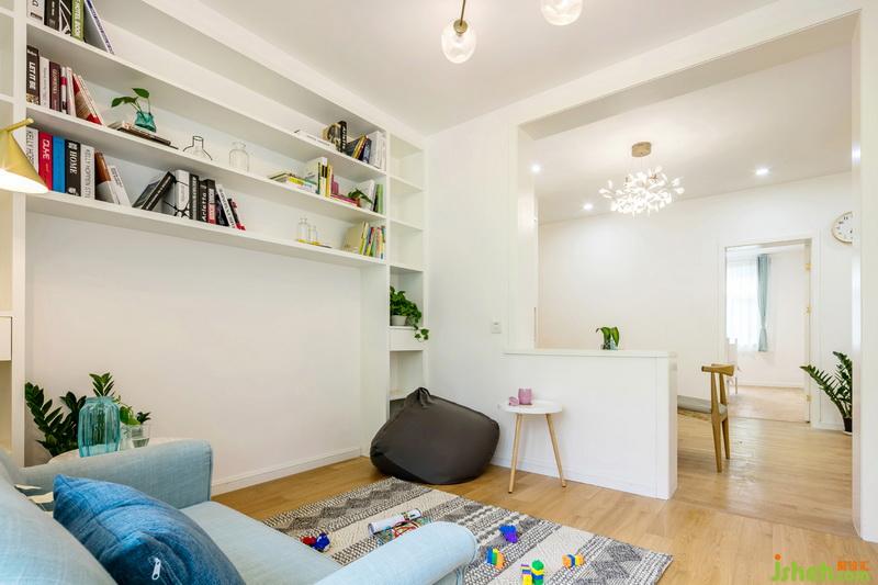 客廳是家庭的核心區(qū)域,更是對于家里有兩個可愛的寶寶家庭來說,客廳更是一個有愛的親子樂園,陳舊的硬裝拆除更新是毋庸置疑的,色彩上面以文藝白為基調(diào),搭配地面原木色的木紋磚,藍色布藝沙發(fā),整排的書架預(yù)留出了鋼琴的位置,白色在整個空間內(nèi)一點也不無聊,硬軟裝的結(jié)合,流露出簡約的美感。姐姐在彈鋼琴,弟弟在做游戲,對于爸爸媽媽來說,這里就是最美好的詩和遠方。