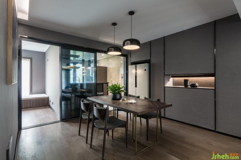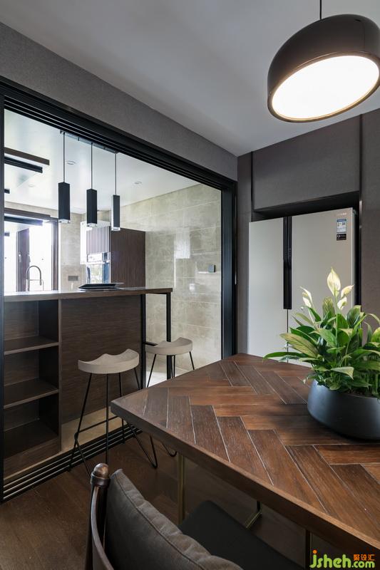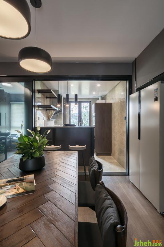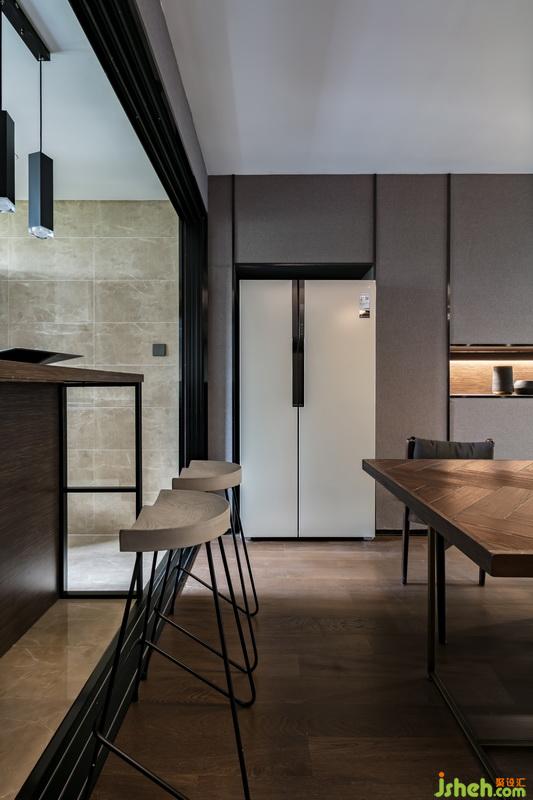 餐廳與廚房間的處理方式,利用三軌移門的方式,可以不同形式的表現(xiàn)餐廳,廚房,多功能房之間的關(guān)系。