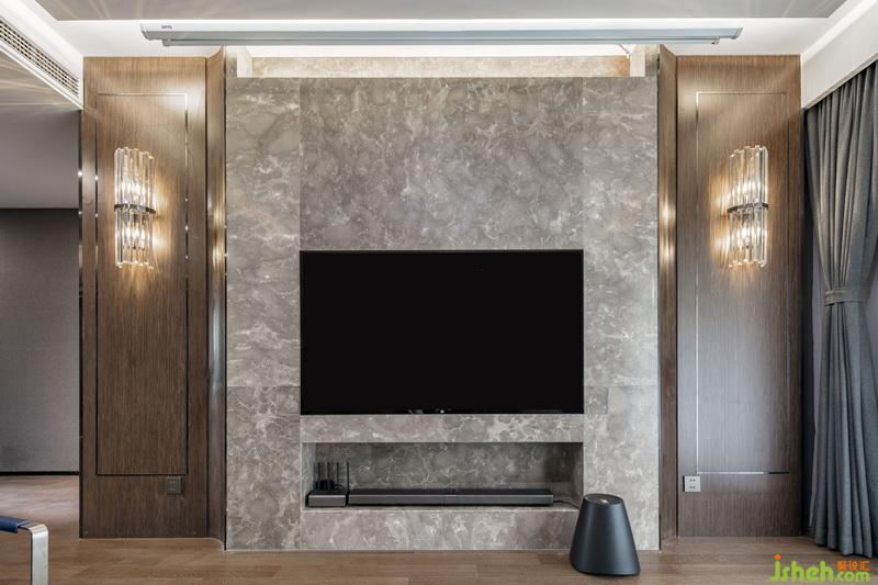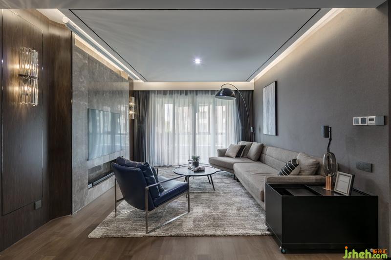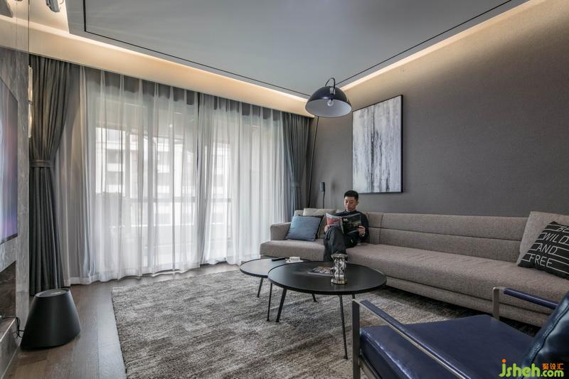 室內(nèi)設(shè)計(jì)師在電視墻的設(shè)計(jì)手法打破常規(guī),讓電視內(nèi)嵌墻體保持嚴(yán)謹(jǐn)?shù)凝R平,同時(shí)隱藏了插座線板,使得看上去統(tǒng)一干凈,沙發(fā)選用45°折角沙發(fā),配以黑色釣魚(yú)燈和不規(guī)則的掛畫(huà),打造一個(gè)穩(wěn)重又精致雅痞的空間感受。