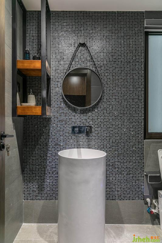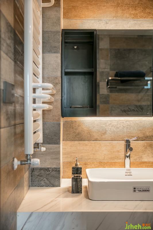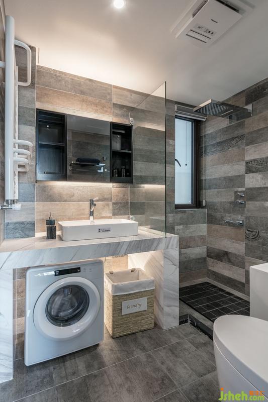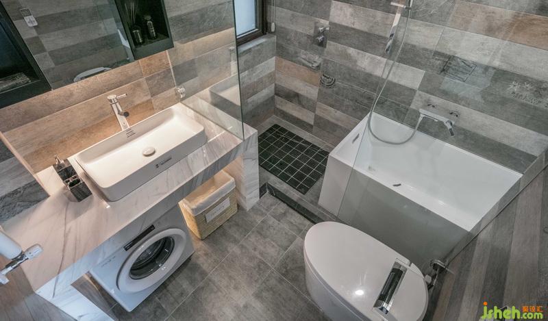 主衛(wèi)的瓷磚為了配套整體空間的色調(diào),在市場采購很久,通過格局的劃分,滿足了盥洗,馬桶,淋浴,浴缸,小件衣物洗滌機(jī),收納籃等功能。