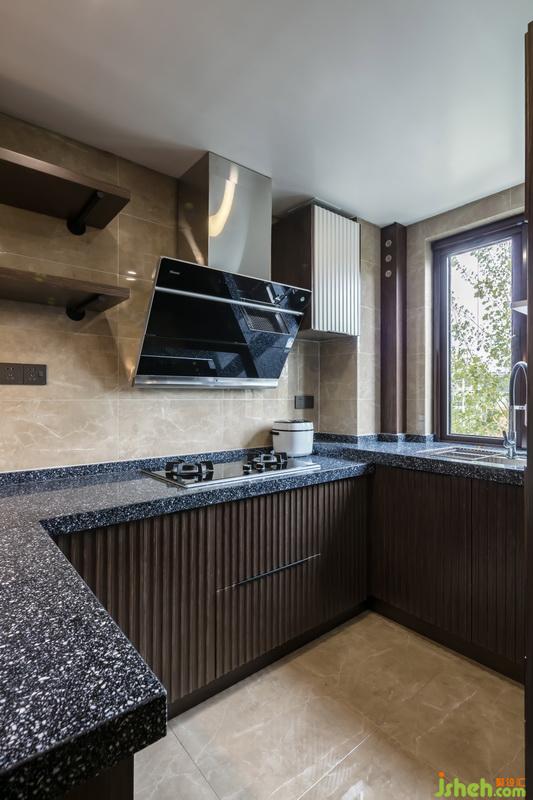 廚房磚樣與柜體的選擇,與主體空間保持一致,烤箱蒸箱柜門板,櫥柜柜體門板特意工廠加工,與公共空間的飾面保持一致,考慮主人的身高,特意做成不同的高度,做到不用彎腰的人性化設(shè)計(jì)。