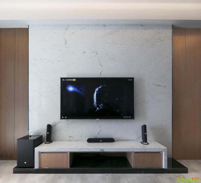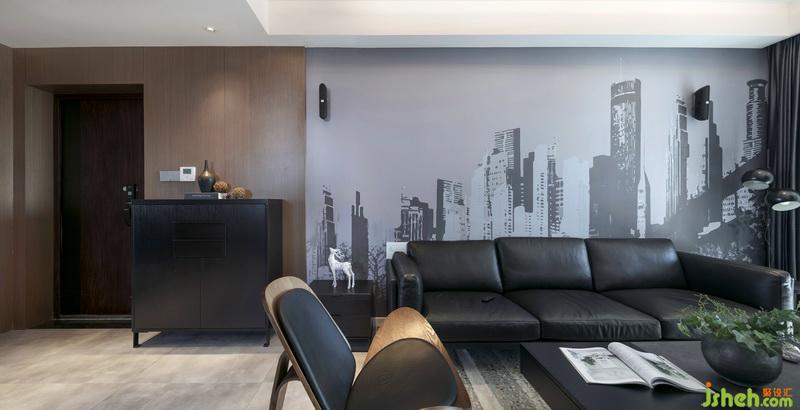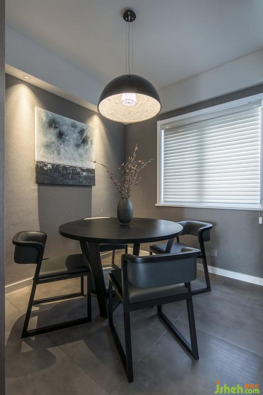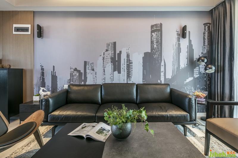 客廳整體色系以中性灰調(diào)為主,搭配柔和的直紋橡木涂裝木皮,給人感覺穩(wěn)重,內(nèi)斂又不失溫暖感。材質(zhì)的使用都選用或經(jīng)過柔光處理的,使整體看起來統(tǒng)一協(xié)調(diào)。軟裝上面采用黑白灰的過渡,配以黑色霧面不銹鋼,拉升了整體空間的品質(zhì)感。