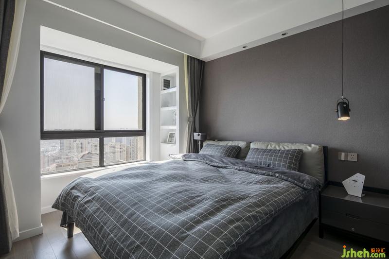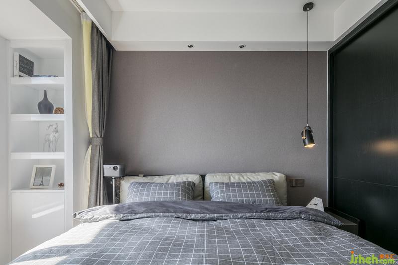 主臥的黑白灰過(guò)渡比較明顯,白天窗簾拉開(kāi)時(shí)則光線通透,夜晚拉上窗簾時(shí),整體空間氛圍靜謐舒適。