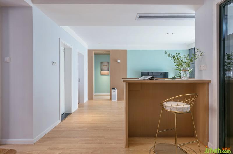 室內(nèi)設(shè)計(jì)師將入戶堵?lián)醯膲w改造成吧臺(tái),讓原本不大的空間擴(kuò)展開視野。