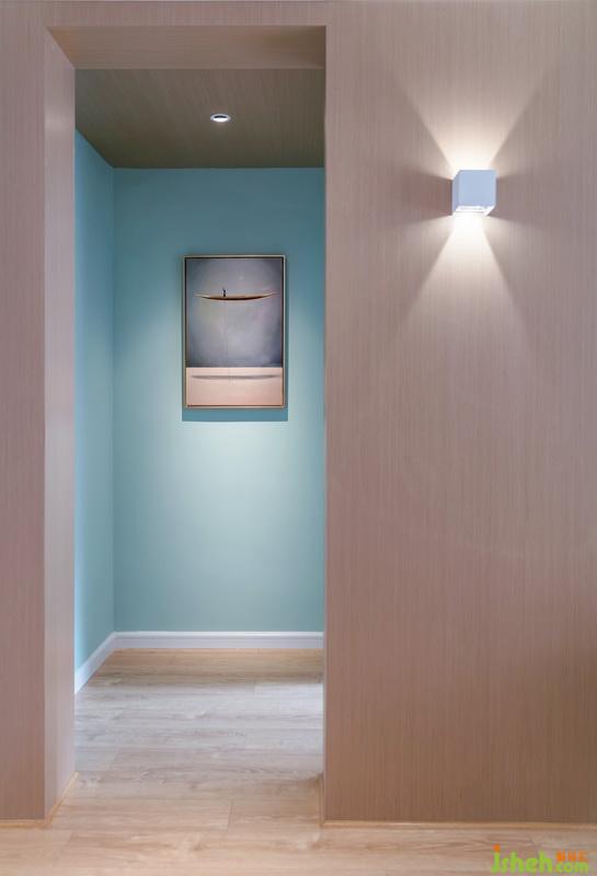 將正對(duì)著過(guò)道的主衛(wèi)門封閉作為空間端景,一幅畫點(diǎn)綴即可。