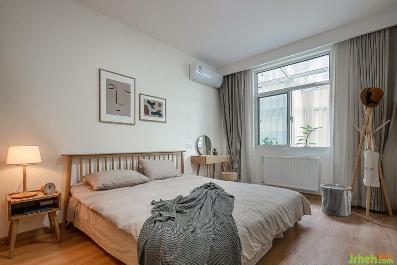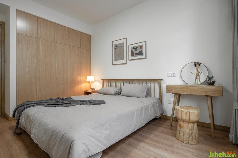 室內設計師改造之后的臥室,內嵌大衣柜柜門同樣選用原木色與整體格調保持一致,使主臥擁有它本該有的收納和清爽。