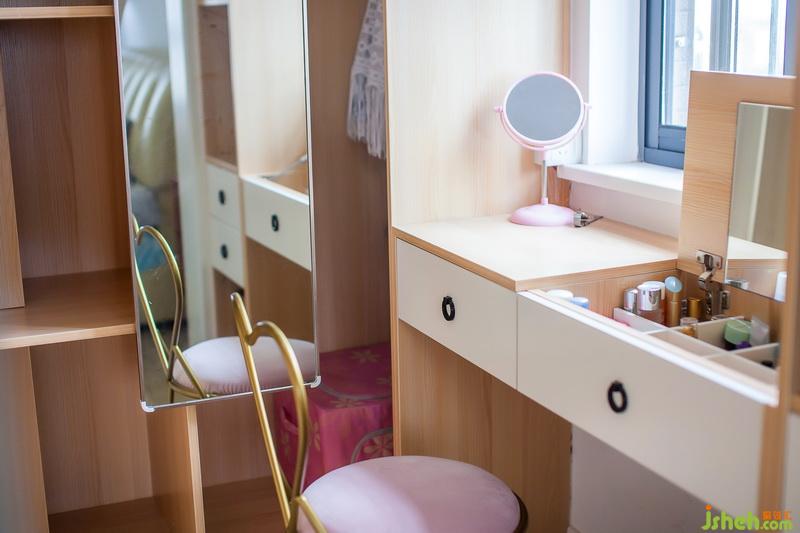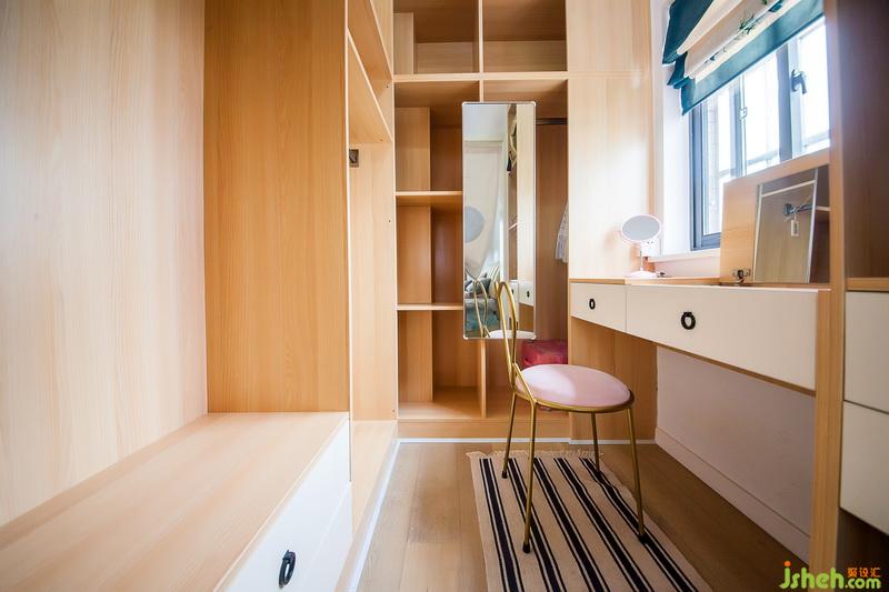 室內(nèi)設(shè)計師在結(jié)構(gòu)的改造上,綜合業(yè)主日常需求,將主臥內(nèi)衛(wèi)改變?yōu)橐旅遍g,并且布置有女主人的梳妝臺,這是一個女主人美麗變身的魔法室。