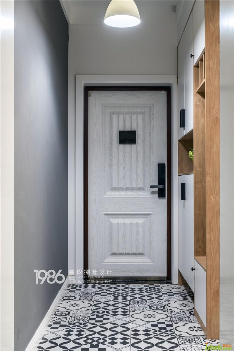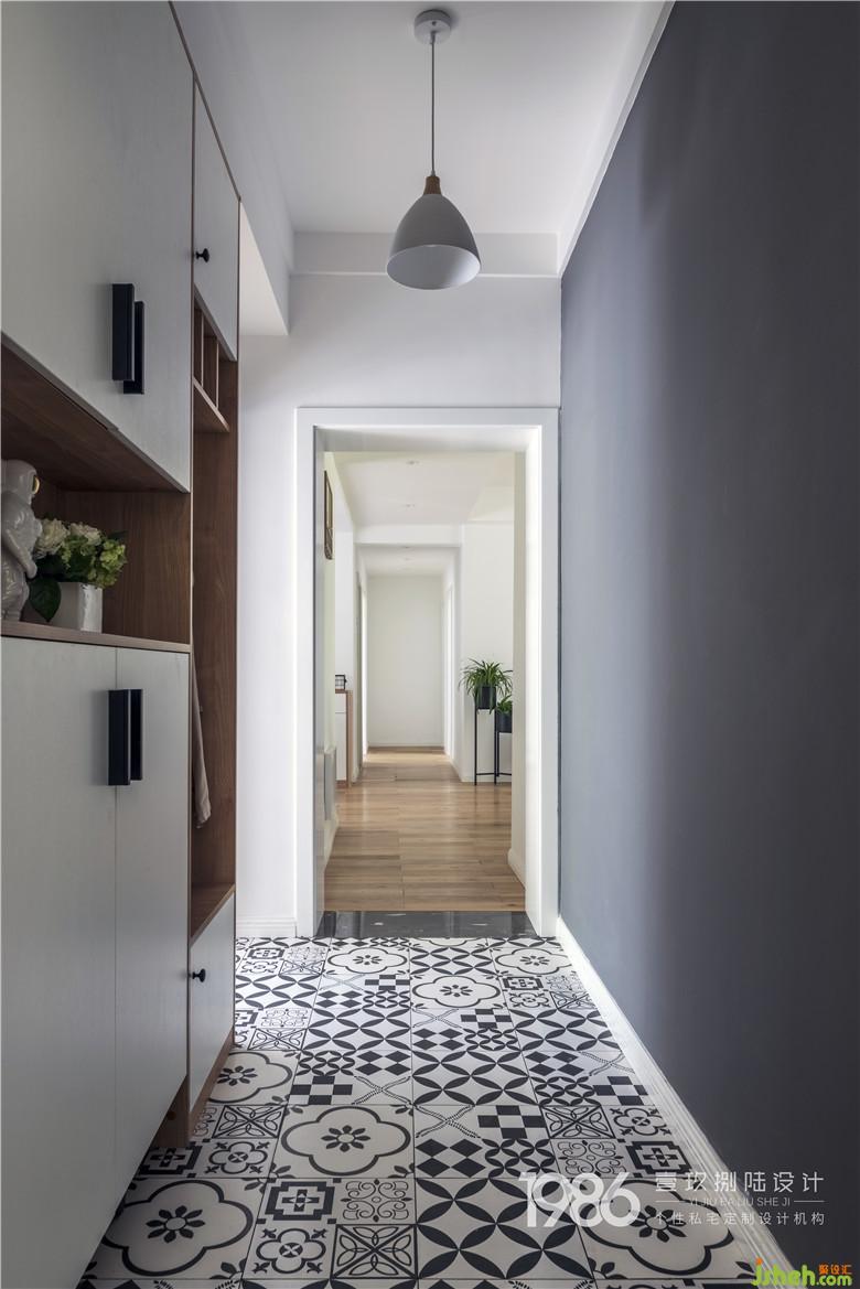 而門(mén)廳另一側(cè),用整面手繪黑板墻裝飾,這里將會(huì)成為孩子的涂鴉區(qū)域,放飛孩子天性又不用擔(dān)心家中的其他區(qū)域被涂抹。白色的入戶(hù)門(mén)與白色鞋柜,室內(nèi)設(shè)計(jì)師搭配黑白花紋的地磚,讓入戶(hù)區(qū)域整體協(xié)調(diào)而又不逼仄。
