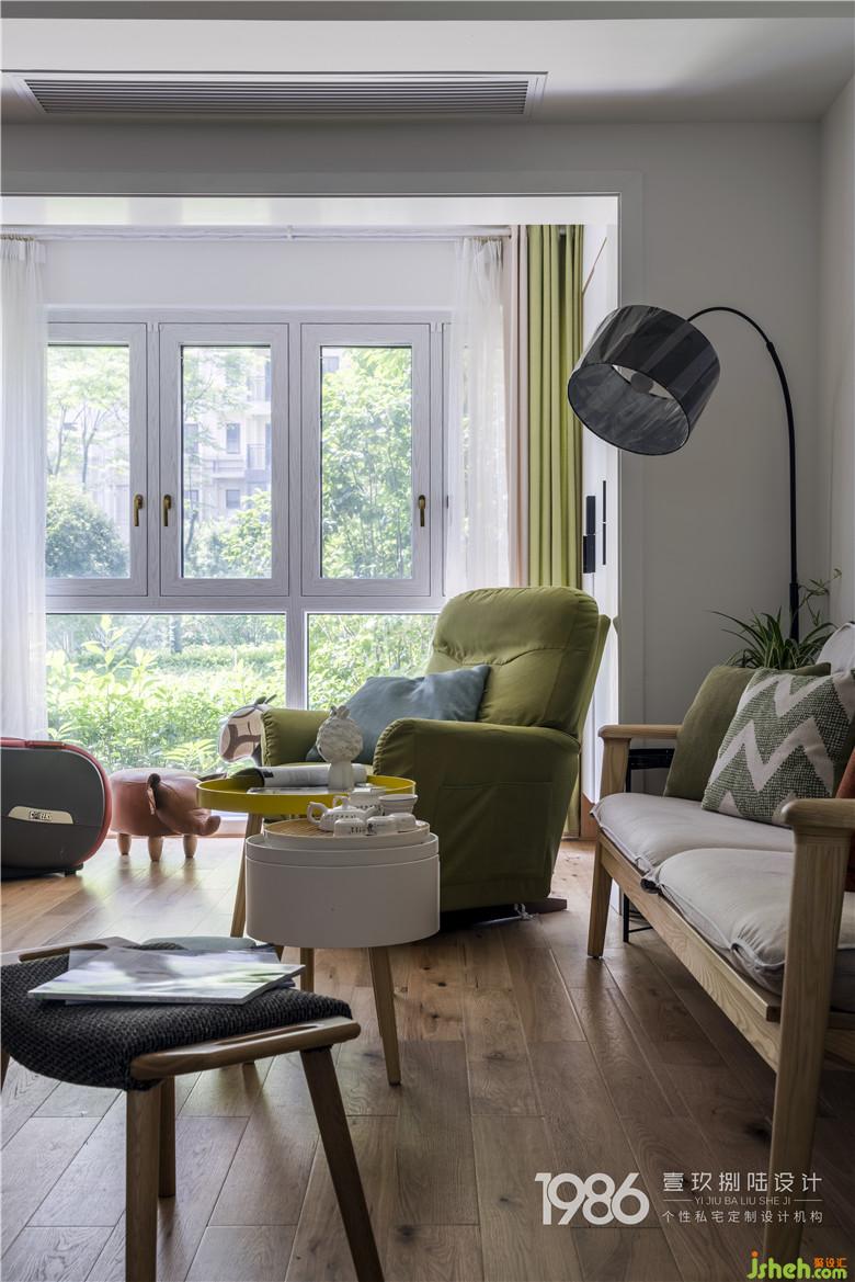 客廳的小象凳子與搖搖椅、陽(yáng)臺(tái)的小馬凳子,那么閑適充滿樂(lè)趣。窗外生意盎然的花草樹(shù)木呼應(yīng)著家中的綠色,空間增添令人愉快的活力氣息,就是幸福生活最好的容器。