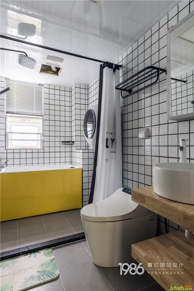 主衛(wèi)和次位都實(shí)現(xiàn)干濕分區(qū),方便平時(shí)的使用與衛(wèi)生處理。主衛(wèi)明黃色的浴缸照亮了整個(gè)空間,暖暖的泡浴給予身心一種愉悅的放松;次位馬桶旁室內(nèi)設(shè)計(jì)師有為老人設(shè)計(jì)的扶手,小小的細(xì)節(jié)是這個(gè)家溫馨的點(diǎn)點(diǎn)滴滴。