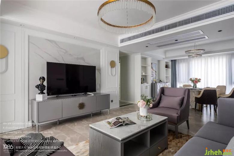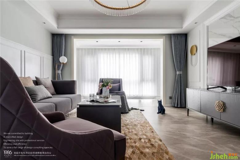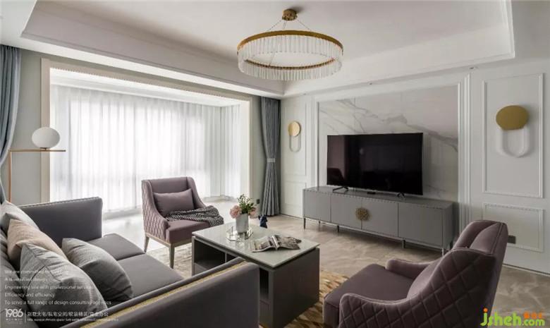 沙發(fā)背景墻是簡單的線條墻板,超大的落地窗賦予空間充沛的陽光,加上線條的立體感,整體淺色調(diào),裝修公司讓客廳格外通透明亮。