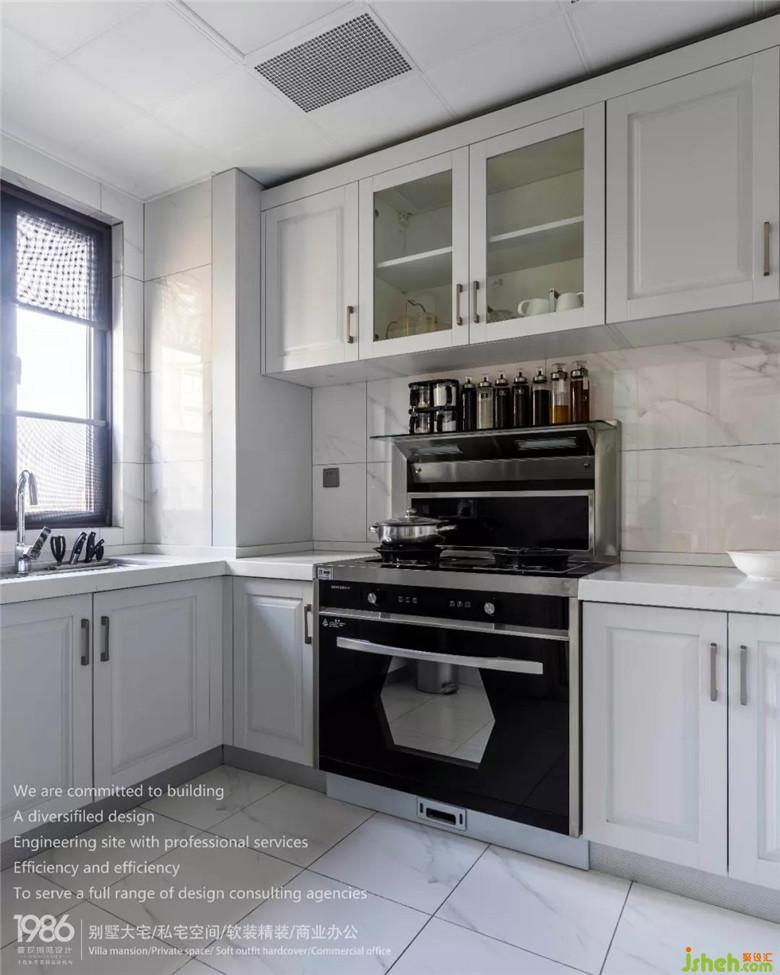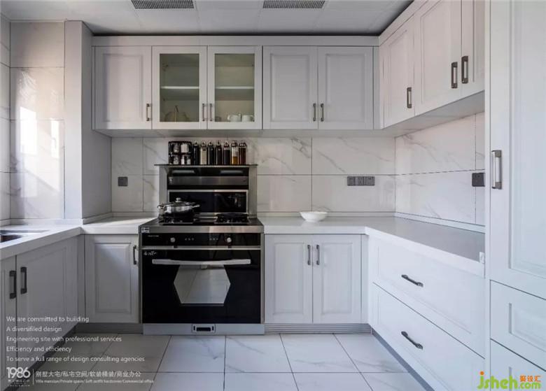 裝修公司設(shè)計(jì)U字型操作臺(tái)滿足了烹飪需求,超多的儲(chǔ)物空間,方便瓶瓶罐罐的存放。
