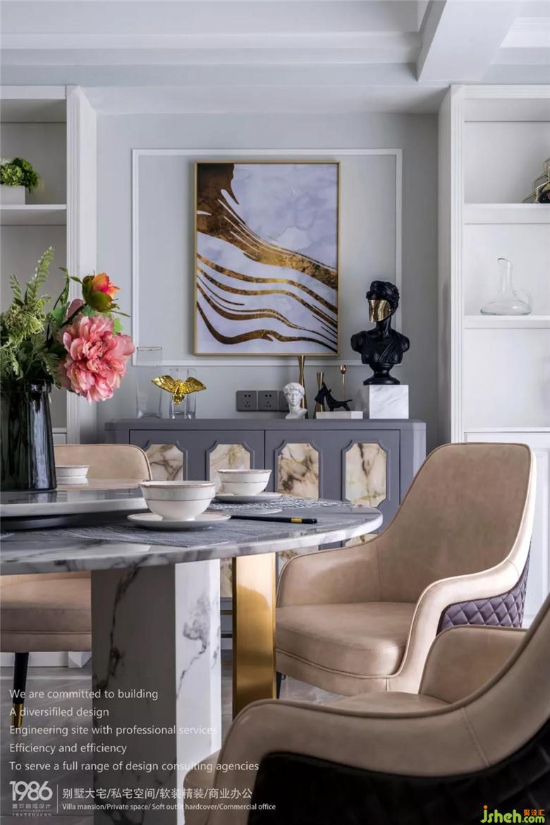 皮質(zhì)的餐椅、大理石桌面、金屬腳架...簡單的設(shè)計(jì)讓餐廳的通透性更甚,也讓這種優(yōu)雅的氣息更濃。