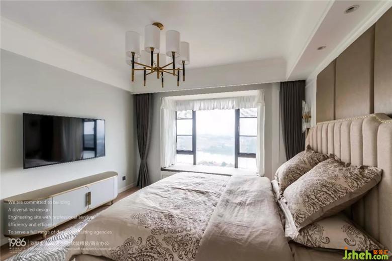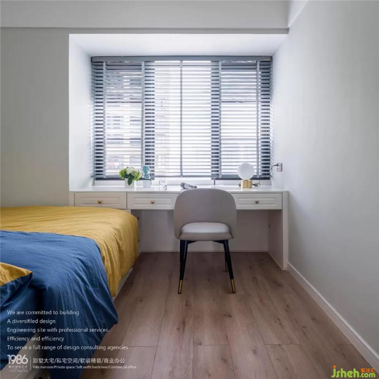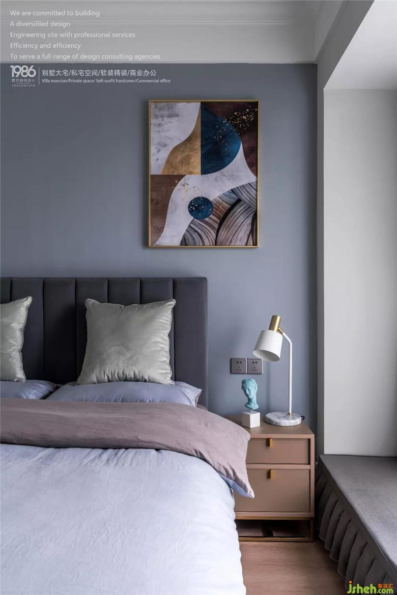 次臥摒棄了不必要的裝飾,裝修公司給造型做減法,用高級的藍(lán)灰色作為主調(diào),搭配深灰色,營造出藝術(shù)感。