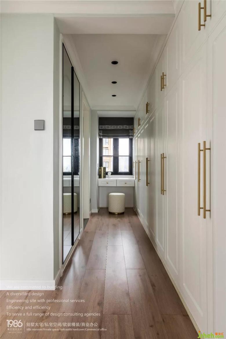 衣帽間的儲物量十分強(qiáng)大,并且根據(jù)窗戶位置設(shè)置了梳妝臺,女屋主可以在這里梳妝打扮,同時(shí)也豐富了柜體結(jié)構(gòu)。