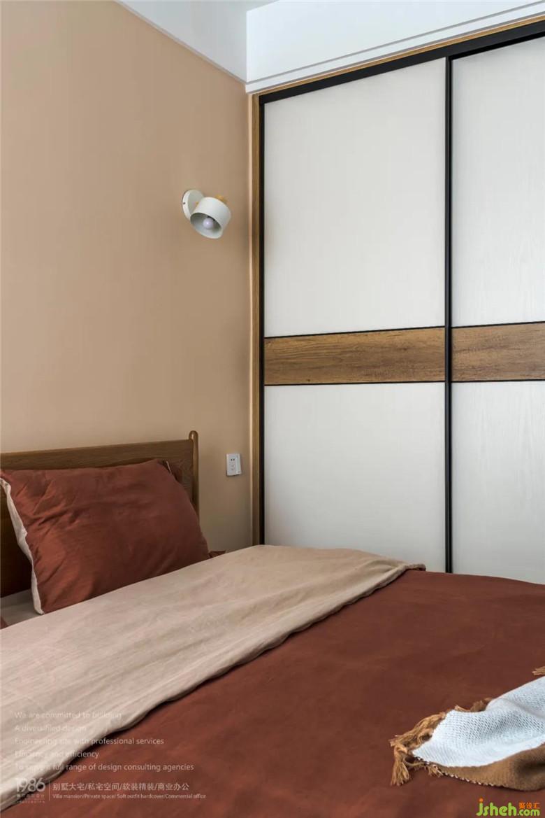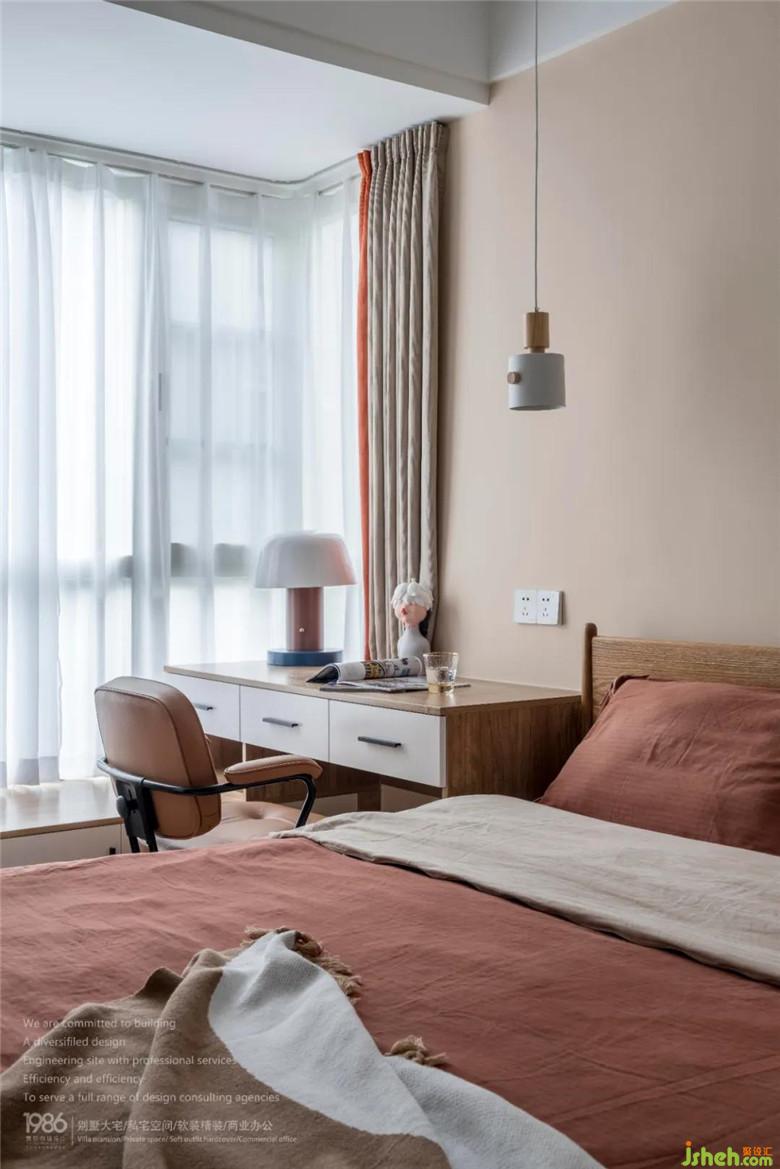 臥室是人最放松的空間,這兒沒有華麗的裝飾,裝修公司用莫蘭迪色調(diào)的配色使空間更加的沉浸和溫馨。