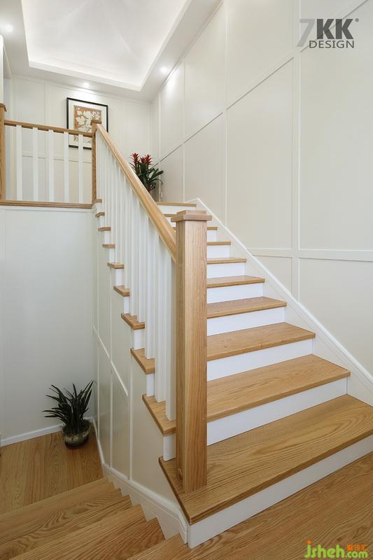 樓梯木質(zhì)紋理與白色搭配,干凈清爽。