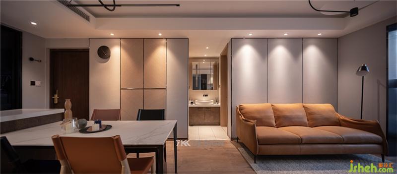 本案屋主是一對(duì)中年夫妻,男主人紳士有品味,女主人溫婉又時(shí)尚,如果他們有了小孩一定也會(huì)很優(yōu)秀,但是他們卻選擇了丁克,不要小孩,他們說(shuō)很享受兩人的世界,想要追求純粹的愛(ài)情,即使結(jié)婚好多年,兩人的感情卻絲毫不減。對(duì)于追求高品質(zhì)生活的夫妻來(lái)說(shuō)在自己家的裝修設(shè)計(jì)上更希望能個(gè)性,獨(dú)特些,但是房子本身是精裝房,而且交付的情況只能說(shuō)是湊合,而他們是不愿意湊合的,所以找到了我們希望重新翻新。 他們很喜歡音樂(lè),希望所到之處都能聽(tīng)到喜歡的音樂(lè); 他們都愛(ài)看電視,希望有超大屏幕的視覺(jué)享受; 他們也愛(ài)收藏精美的擺件,希望能有可以展示的空間;他們平時(shí)在家辦公,需要獨(dú)立書(shū)房; 雖然父母離他們居住的不遠(yuǎn),也要預(yù)留父母偶爾入住的空間; 他們的衣物比較多,平時(shí)也比較注重儀式感,需要預(yù)留衣帽間及化妝的空間; 即使人不多,也想保留原始的兩衛(wèi)功能。 最終這套三房?jī)尚l(wèi)的精裝房在他們要求不大動(dòng)原始硬裝格局的情況下,設(shè)計(jì)師通過(guò)局部小改、軟裝搭配和對(duì)選材的嚴(yán)格把控,為屋主量身定制了符合他們兩人生活習(xí)慣的設(shè)計(jì)規(guī)劃。整體的風(fēng)格利用工業(yè)風(fēng)做舊的概念將原始的魅力與現(xiàn)代時(shí)尚質(zhì)感結(jié)合,在碰撞與融合中,彰顯出獨(dú)特的誘惑張力:時(shí)尚、個(gè)性。