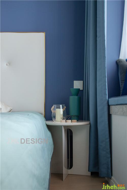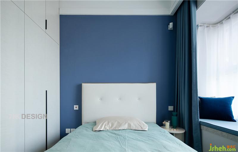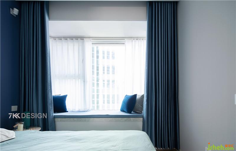 飄窗外側(cè)是一層白色的窗紗,內(nèi)部是厚實(shí)的藍(lán)色窗簾,白天一層窗紗光線(xiàn)透過(guò)窗紗演繹空靈舒適的氛圍,夜晚拉上藍(lán)色的窗簾,享受安詳靜謐的睡眠時(shí)間。