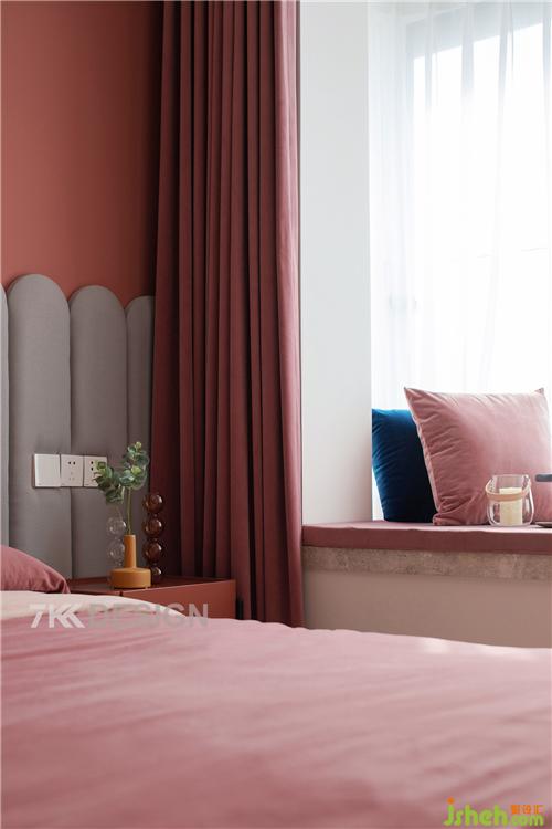 主臥改造前后對(duì)比:主臥將原始的硬包背景墻拆除,采用乳膠漆和拱形軟包拼接的造型相接合,上海室內(nèi)設(shè)計(jì)師整體以紅色系為主營(yíng)造浪漫的睡眠空間。