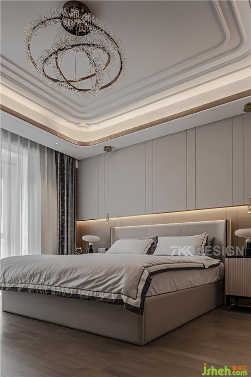 老人房主打舒適溫馨,臥室的淺色系搭配灰色窗簾、黃銅色金屬點(diǎn)綴,不同的色系交織在空間里,營(yíng)造溫柔舒適的臥室氛圍,給父母一分安寧的生活。