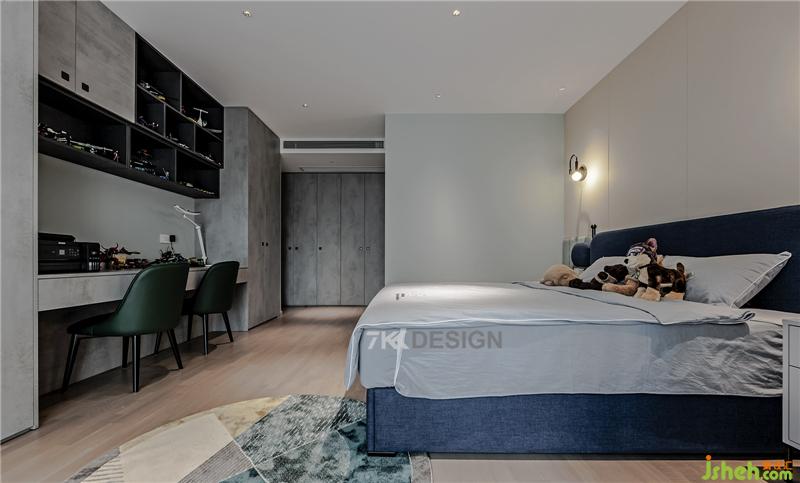 兒童房房間有自己獨(dú)立的書(shū)桌做作業(yè),也有自己獨(dú)立的衛(wèi)生間。兒子雖然有自己獨(dú)立的房間,但考慮到小朋友年齡還小,還需要父母照顧關(guān)心,所以房間是和父母房面對(duì)著,同時(shí)還公用一個(gè)衣帽間。讓父母,小朋友有自己的私密的空間的同時(shí),又相互密切相連上海裝修設(shè)計(jì)。