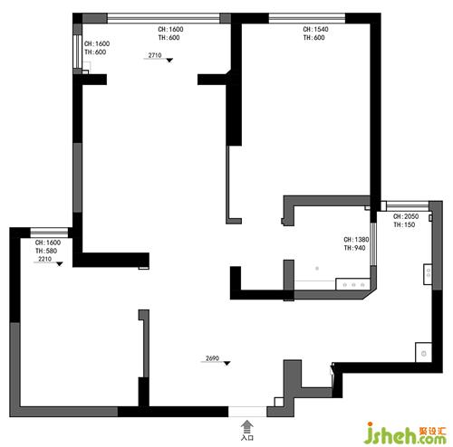 1、進門就是餐廳空間,很堵,采光也比較弱,