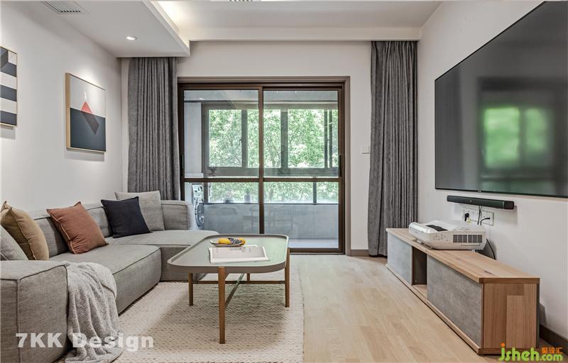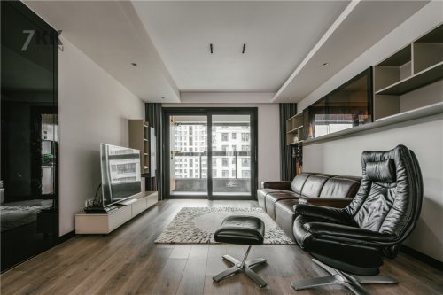 家中的視野開闊通暢,通過陽臺上的落地窗在視覺上給人一種簡潔、不僅滿足了采光性好的需求,也是使空間有了更好的延伸感。白色的墻面上掛上幾幅裝飾畫,給家充滿了藝術的氣息,非常的實用??蛷d中的40寸電視機搭配上投影儀,每到下班或者周末的時候,俊男美女都會坐在一起看著電視,享受著生活中帶來的樂趣。