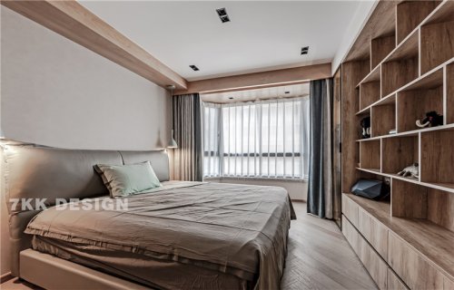 4、次臥做成書房+衣帽間。玻璃移門開獨立可開放,業(yè)主暫時不考慮小朋友,這個房間這樣設計使用率會更多,以后可以更改成兒童房。