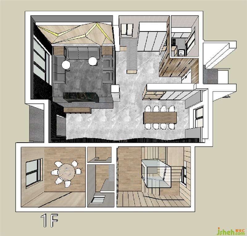 一樓空間主要是活動公共空間,客廳、中西結(jié)合的餐廳,廚房。