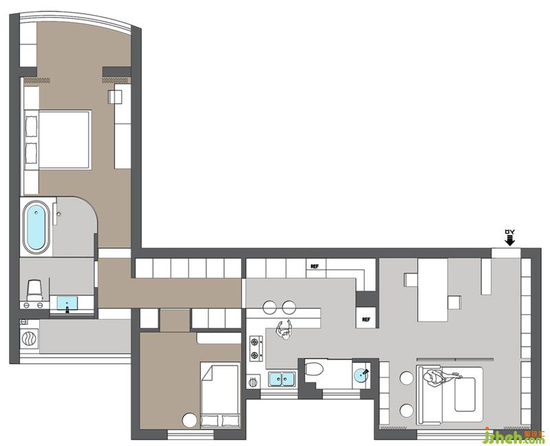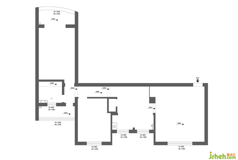 2、廚房封閉式空間很小,整個過道比較浪費(fèi),而且動線很繞。過道采光也比較差。