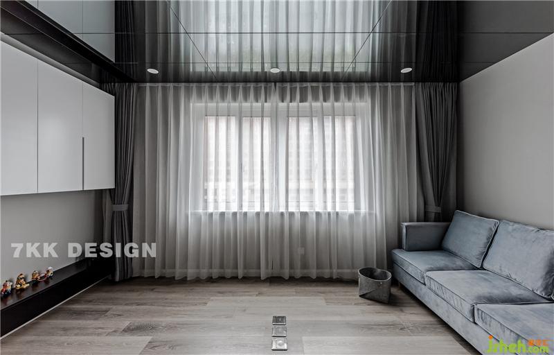 原本用玻璃隔斷客廳空間,是在沙發(fā)后面留有辦公的空間,靠墻放置辦公桌椅,因?yàn)榕臄z的時候業(yè)主還沒有買到,所以就把沙發(fā)后移靠墻放置。這樣辦公的時候想要獨(dú)立的空間,就把玻璃拉上。 客廳面積相對比較小,地面淺色地板鋪貼,搭配絲絨沙發(fā),頂部采用灰鏡玻璃,這樣空間有了延伸性,通透而有質(zhì)感。雙層灰白窗簾搭配,留下白色落地窗紗,起到增大空間之感,使得整個環(huán)境變得十分清晰自然,同時也有一種如沐清風(fēng)之感,讓原本單調(diào)的客廳變得簡約大氣。