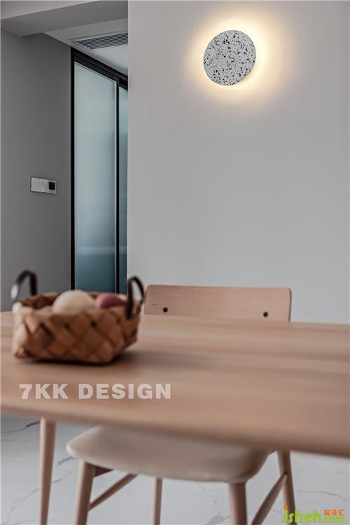 進(jìn)門定制一整排頂天立地的白色鞋柜收納柜+裝飾柜,鏤空的設(shè)計讓柜體不會顯得厚重,擁有通透性,既美觀又實(shí)用。 餐客廳中間采用玻璃做隔斷,可封閉可獨(dú)立的設(shè)計讓空間有了彈性。餐廳墻面頂部都以白色為主,地面采用白色紋理地磚拼接,原木色餐桌椅搭配,淡雅舒適,滿足業(yè)主希望在繁忙的一天工作后,回到家中去找尋一份寧靜與溫暖的訴求,讓業(yè)主回歸家、回歸生活、回歸自然。