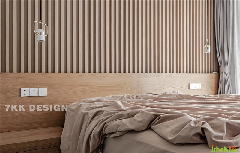 臥室原木色,白色,灰色做好的搭配,整體打造自然溫馨舒適的睡眠環(huán)境。