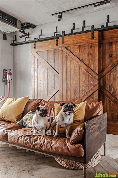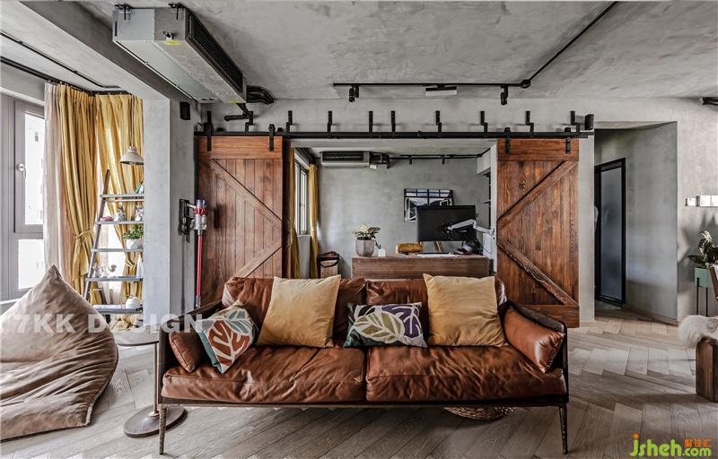 原本客廳和臥室相連的墻面被敲掉,做成多功能房間,利用三扇谷倉門隔斷,高顏值與實(shí)用性并存。頂上加了一個(gè)可三聯(lián)動(dòng)的鐵藝軌道與工業(yè)風(fēng)完美結(jié)合,個(gè)性、粗獷、神秘!