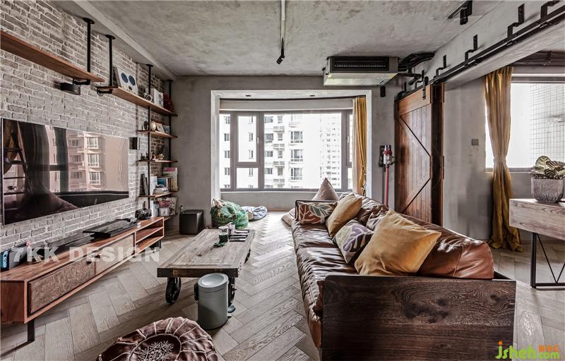 雖說工業(yè)風(fēng)在一般的應(yīng)用中給人冷的感覺,但是在本案的整體搭配上很好的利用冷暖結(jié)合,打造出粗獷而又溫潤(rùn)的空間住宅??蛷d大面積淺色系地板鋪貼,暖色系皮質(zhì)沙發(fā)搭配質(zhì)感大氣,燈具選用簡(jiǎn)易滑軌燈,炫酷時(shí)尚,木質(zhì)電視柜質(zhì)感而細(xì)膩。帶有滑輪做舊的茶幾靈活個(gè)性時(shí)尚。