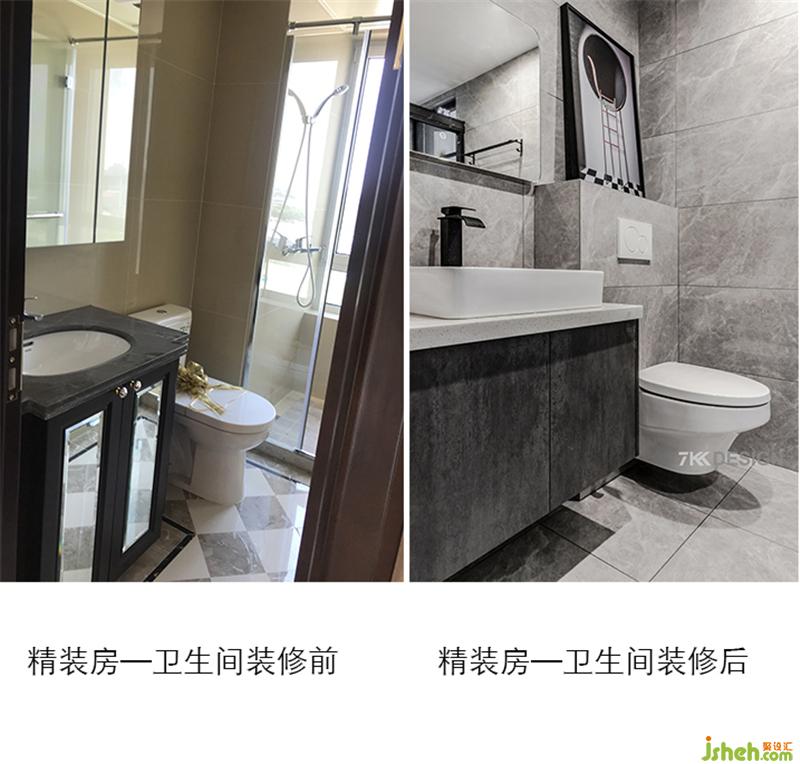 3、原房屋衛(wèi)生間外側(cè)有部分面積可以納入室內(nèi)使用,多出來的空間我們做成了客衛(wèi)和工作區(qū)域。設(shè)計(jì)后的客衛(wèi)位置本身就是原先客衛(wèi)的位置旁邊,只是向后移動(dòng)了一下。馬桶做的是掛壁式馬桶,所以不涉及改馬桶坑位的問題,本身整個(gè)房間的水管就在客衛(wèi)的位置,所以也不涉及水管改動(dòng),下水的問題。
