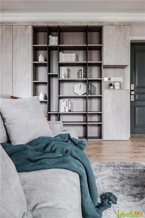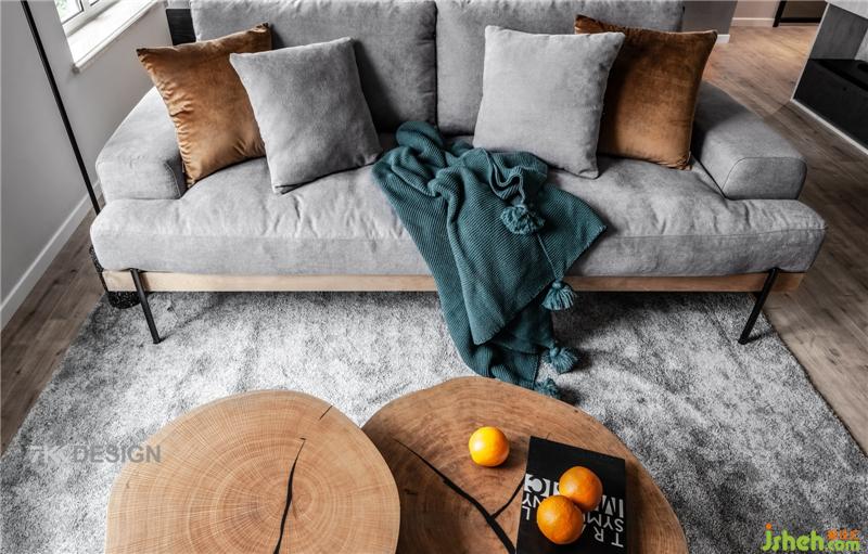 客廳的整體空間還是蠻大的,客廳有兩扇大窗,使的客廳的空間光線充足,同時(shí)搭配著方正的灰色系沙發(fā)和木系茶幾,灰色的地毯和定制柜,以及水泥色墻面,打造出時(shí)尚精致的工業(yè)風(fēng)格。