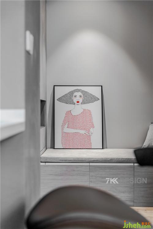 臥室的衣帽間采用的是玻璃材質(zhì)定制衣柜,玻璃衣柜不會阻擋陽光的射入,使得臥室整體的透光性會更好,臥室更明亮。拍攝的時候業(yè)主還沒有住進去,在衣帽間和床頭的玻璃隔斷窗邊的角落上的空間,有設(shè)計梳妝臺的位置,方便女業(yè)主平常整理,化妝,不過業(yè)主還沒有購買回來。
