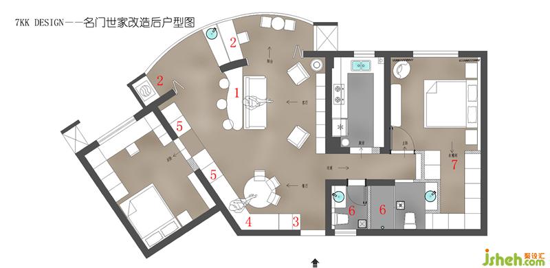 1、從進戶門進去整個空間很異形,客餐廳呈現(xiàn)不規(guī)則區(qū)域。