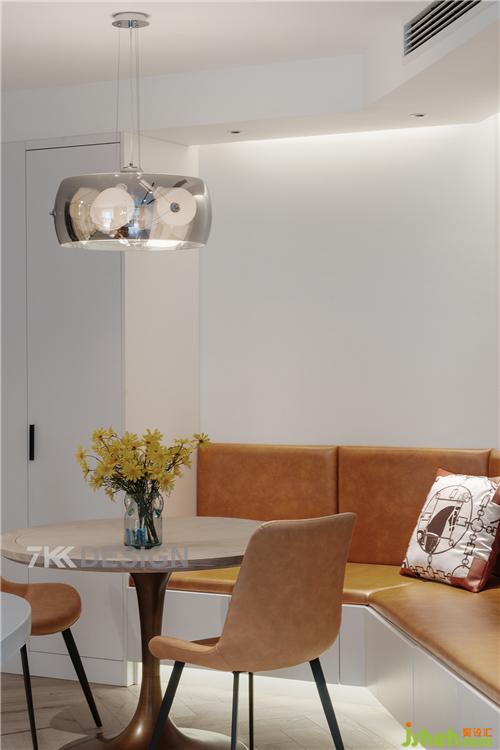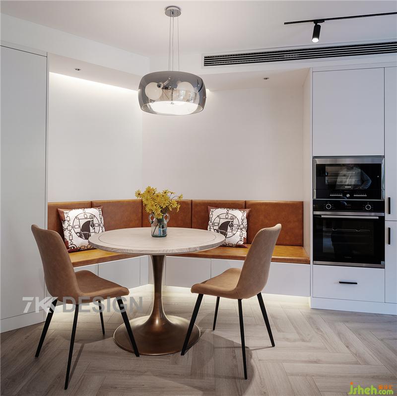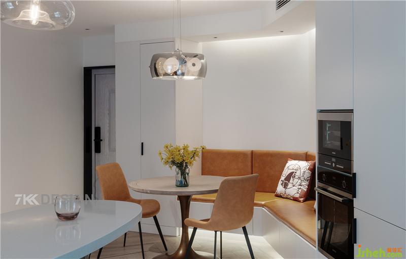 4、利用不規(guī)則轉(zhuǎn)角的空間定制卡座餐廳,最大化利用空間。