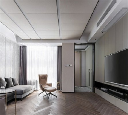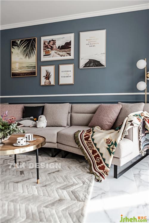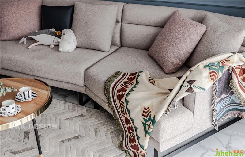在選擇地面材質(zhì)的時(shí)候業(yè)主是比較糾結(jié)的,一開始設(shè)計(jì)師建議用木地板家居會(huì)更溫馨舒適些,但是男業(yè)主比較偏向瓷磚,打理起來會(huì)比較方便,最終設(shè)計(jì)師在滿足業(yè)主選用瓷磚的情況下,選用地毯搭配調(diào)和冷色調(diào),增加層次感。