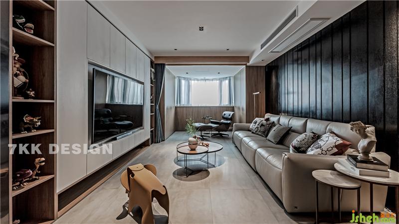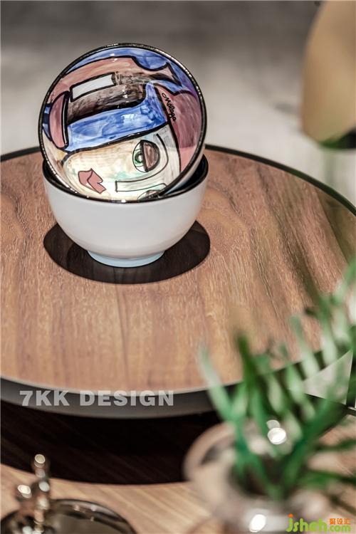 客廳和陽臺中間利用窗簾作為功能劃分,拉上窗簾,陽臺放上一張單人沙發(fā)椅,變可作為獨立的閱讀休閑空間,上海裝修設計平時作為客廳一部分,擴大客廳空間面積。陽臺兩側(cè)靠墻定制到頂?shù)墓褡樱看岸ㄖ瓢?,既增加臺面裝飾又增加收納功能。 窗簾盒和門套都是采用木飾面,客廳和陽臺無主燈設計讓頂面更加簡潔干凈,視覺上顯得層高更高,光線更加均勻,可以更加有層次的利用光線,配合落地燈,筒燈營造不一樣的客廳休閑照明氛圍。 圓形藝術(shù)茶幾錯落搭配,精致實用。