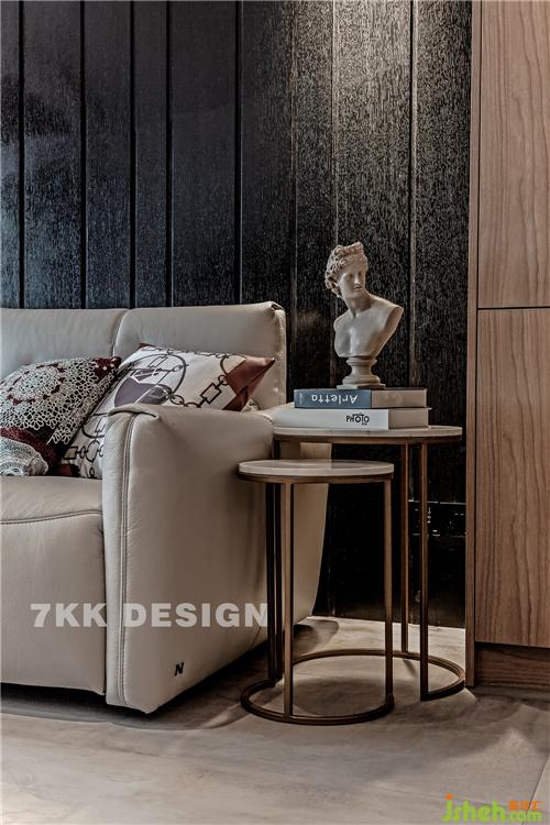 沙發(fā)邊幾上錯落擺放黑白書籍搭配藝術(shù)雕塑裝飾,打破 一些單調(diào)、生硬的線條,獲得更完美豐富的空間感受