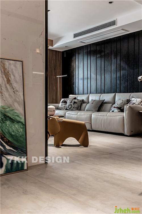 客餐廳一體,南北通透,沙發(fā)2.8m可3人座,:黑白永遠是經(jīng)典永不會過時的色彩,背景墻成品定制黑色細木條造型木飾面,與電視背景墻白色木飾面柜體色調(diào)形成明顯的色調(diào)對比,簡單而不失藝術(shù)魅力。