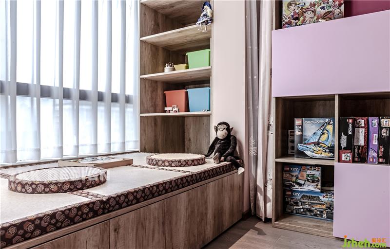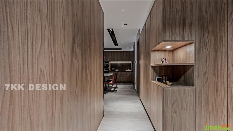 主臥門打開,過道光線也很充足,過道左側(cè)的衛(wèi)生間,右側(cè)定制的到頂?shù)墓耋w,下方鏤空設(shè)計方便打理,內(nèi)藏?zé)魩浹a光線的不足,讓空間更具通透感。中間鏤空設(shè)計,可以擺放主人的一些手作玩具,隨時放置需要的物品美觀又實用。上下的柜體里面放置平時日常的收納用品,靠近衛(wèi)生間也方便拿取。