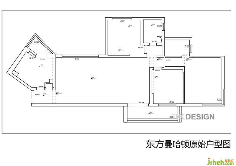 原始戶型圖 這是一套帶有異型空間的戶型,每個(gè)空間都有一面窗戶,所以房屋的采光還可以。