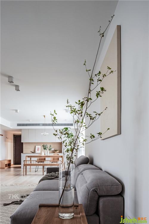北歐風(fēng)情的灰色沙發(fā),沉穩(wěn)而低調(diào),搭配寓意帶來幸福的日本吊鐘,純凈白色的墻體,飽含生機(jī)而不失氣質(zhì),看一眼便能讓人內(nèi)心平和而舒適。