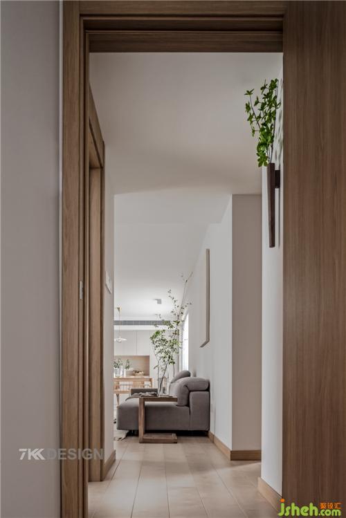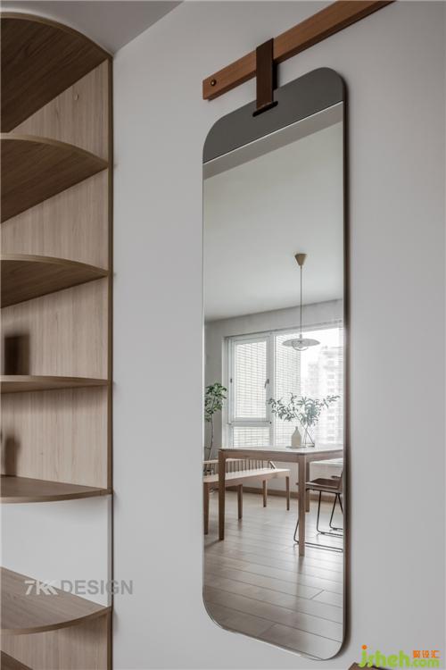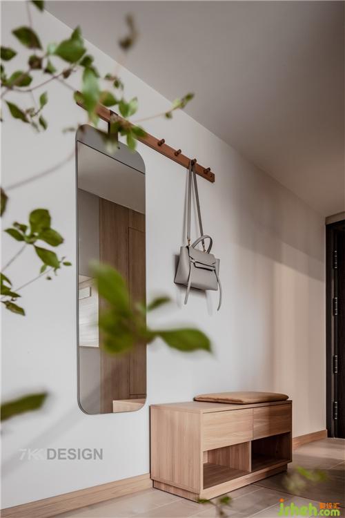 進(jìn)門(mén)處右側(cè)設(shè)置簡(jiǎn)易玄關(guān),原木色的換鞋柜+換鞋凳,簡(jiǎn)單又實(shí)用。方便家里老人,小孩出入換鞋,即安全,又舒適。墻面放置一面穿衣鏡+簡(jiǎn)易掛鉤,進(jìn)出門(mén)前整理衣物、放置包包,每天都儀式感滿(mǎn)滿(mǎn)的。