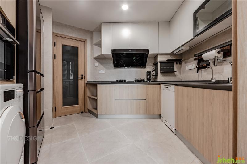 廚房也極具現(xiàn)代與日式結(jié)合的裝修理念,借用自然的木質(zhì)色與白色,靠近自然,融為一體,為廚房帶來(lái)了無(wú)限的生機(jī),黑色油煙機(jī)+置物架+臺(tái)面等黑色物品為點(diǎn)綴,簡(jiǎn)單有不失純粹。